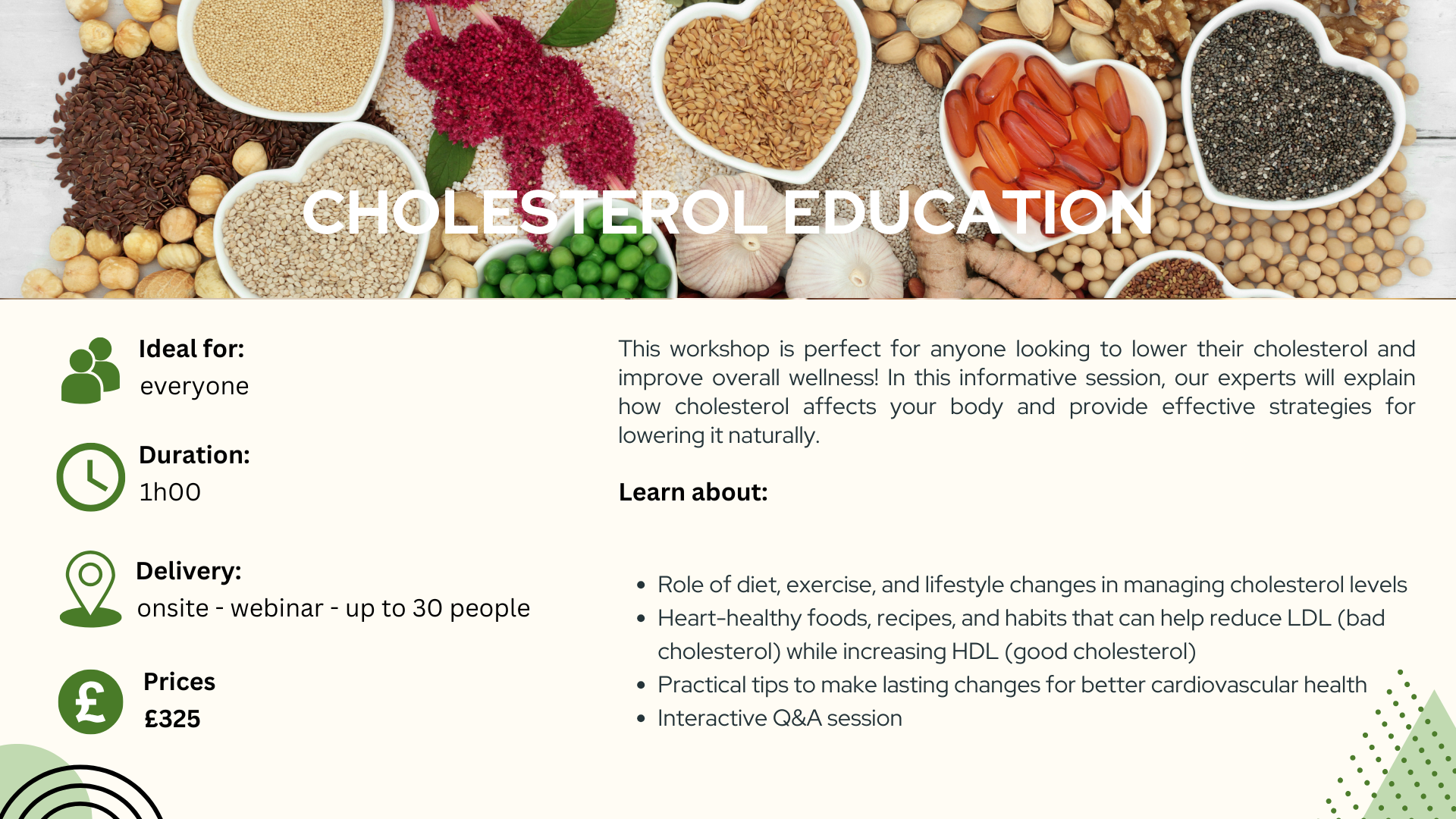 A Cholesterol Education Workshop provides valuable insights into managing cholesterol levels and understanding its impact on heart health. Participants will learn practical tips for making heart-healthy lifestyle choices, reducing risk factors, and promoting long-term well-being.